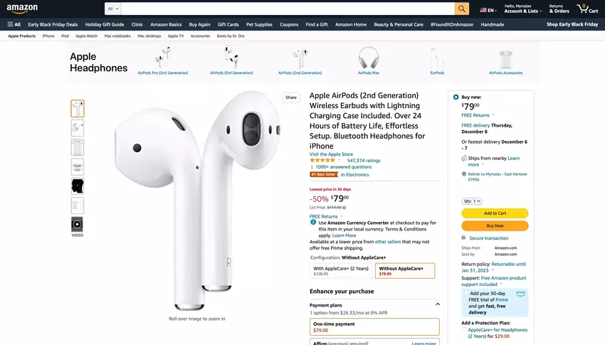 Czarny Piątek na Amazon: AirPods 2 na sprzedaż za 80 dolarów taniej