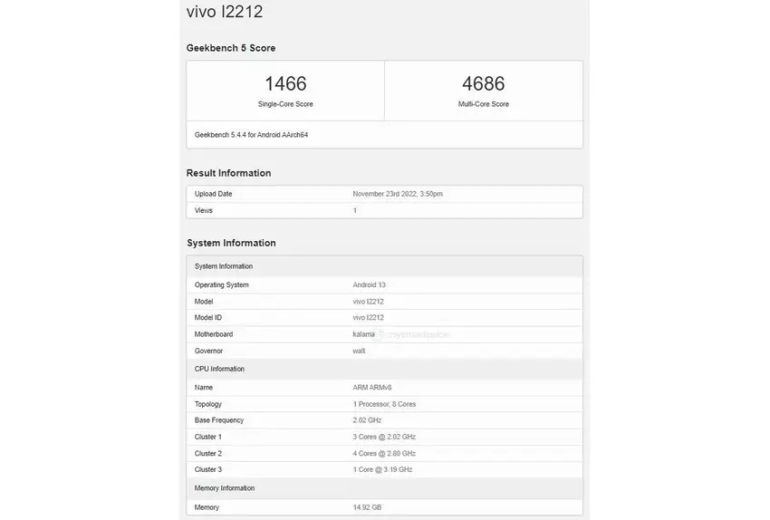 23 listopada smartfon przeszedł test wydajności w benchmarku. Uzyskał on 1 466 punktów w trybie jednordzeniowym i 4 686 punktów w trybie wielordzeniowym. W "teście" brała udział wersja z 16 GB pamięci RAM.