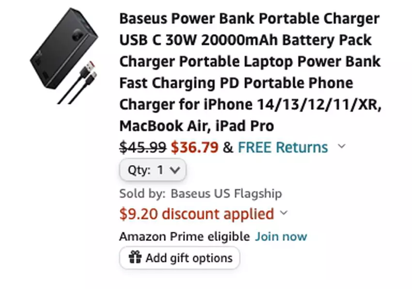 Urządzenie normalnie kosztuje check price on amazon. Ale dzięki kuponowi sprzedawcy cena może spaść o 20%. Bateria ma pojemność 20 000 mAh i może pochwalić się trzema portami: jednym USB-C i dwoma USB-A.