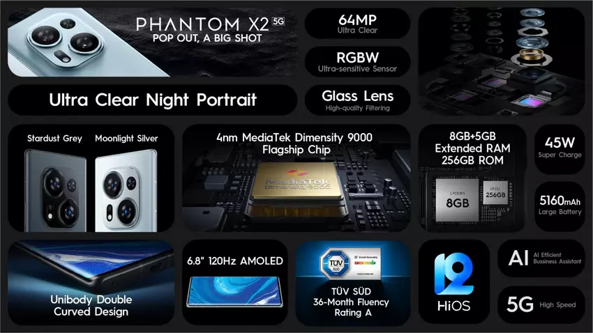 Tecno Phantom X2 - wyświetlacz Dimensity 9000, 90Hz z ochroną Gorilla Glass Victus i aparatem 64MP za 720$
