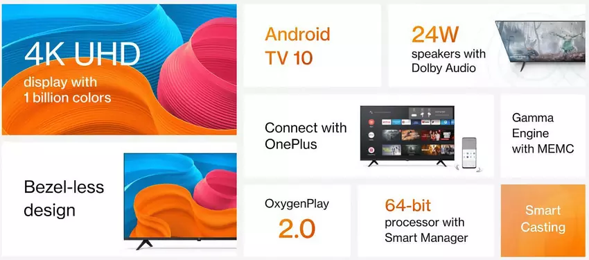 Wyposażony w system operacyjny Android TV 10, OxygenPlay 2.0 oraz asystenta głosowego Google Assistant.