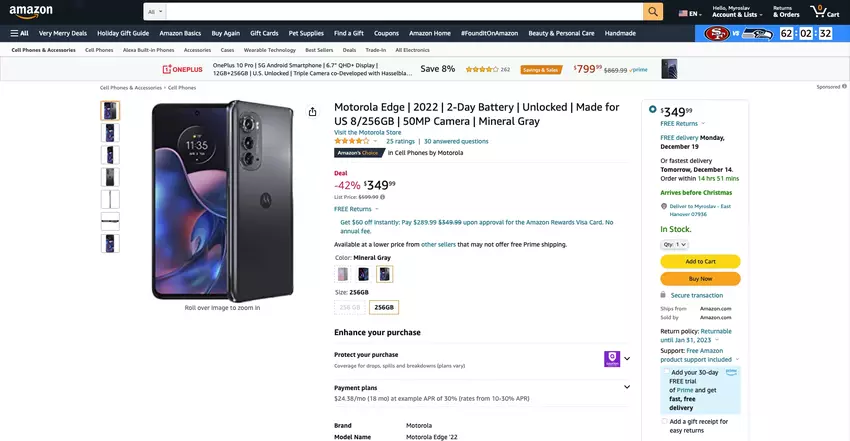 Motorola Edge (2022) z ekranem OLED 144 Hz, układem MediaTek Dimensity 1050 i 256 GB pamięci masowej w sprzedaży na Amazonie za 250 dolarów taniej