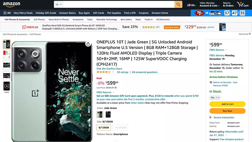 Cena z okazji Czarnego Piątku: OnePlus 10T z układem Snapdragon 8+ Gen 1 i ładowarką 125W w sprzedaży na Amazonie za 50 dolarów taniej