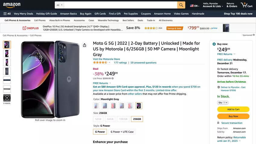 Moto G 5G (2022) z układem MediaTek Dimensity 700 i 256 GB pamięci masowej jest dostępny o 150 dolarów taniej na Amazonie