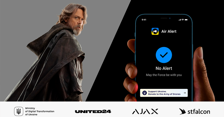 Aplikacja Air Alert, stworzona przez Ajax Systems w lutym 2022 roku została partnerem platformy fundraisingowej UNITED24. Jednocześnie w angielskiej wersji aplikacji głos zabrał ambasador U24, amerykański aktor Mark Hamill.