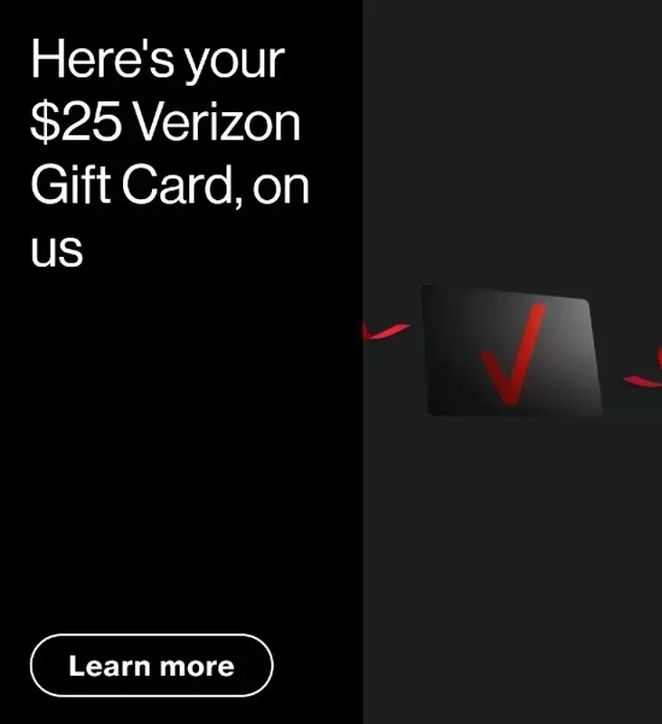 Jeśli masz szczęście, zobaczysz "Here's your $25 Verizon Gift Card, on us". Zostaniesz wtedy odesłany do strony z kodem karty podarunkowej i PIN-em. Podczas korzystania z tego $25 należy wprowadzić PIN. Kartą podarunkową można zapłacić za wszystko, od etui po smartfon, ale tylko w autoryzowanych punktach Verizon.