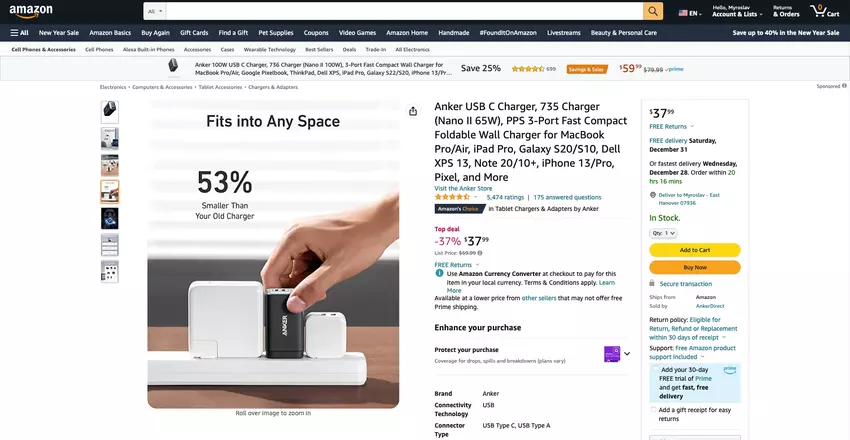 Firma Anker obniżyła cenę ładowarki Anker 735 (Nano II) w sam raz na Nowy Rok.