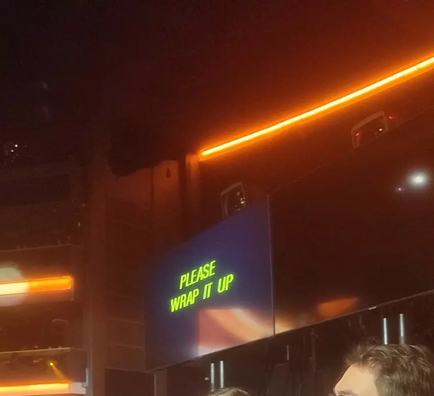 W czwartej minucie przemówienia Kratosa próbowano go powstrzymać prompterem: "Please wrap it up!", później reżyserzy podkręcili głośność muzyki w tle. Ale to też nie przeszkodziło Jajowi.