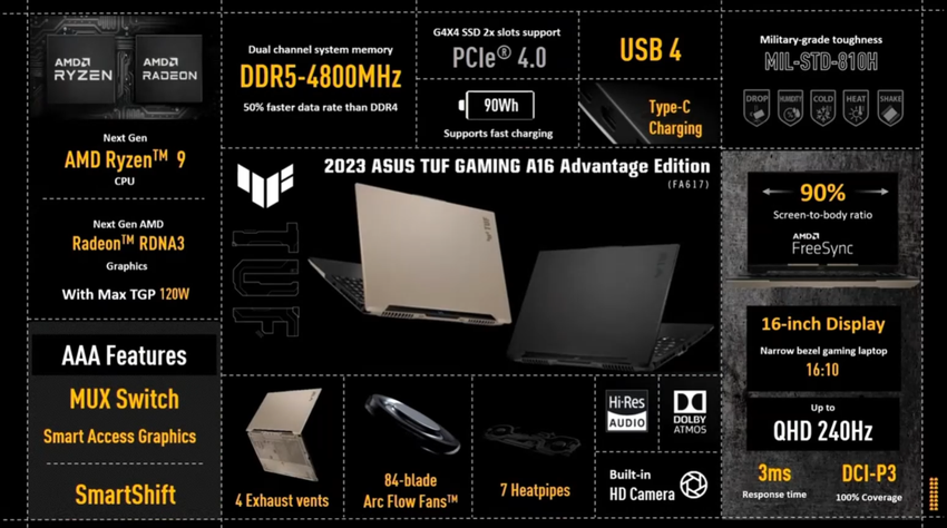 ASUS prezentuje gamingowy notebook TUF Gaming A16 Advantage Edition napędzany procesorami Ryzen 7000 z kartami graficznymi Radeon RX 7000