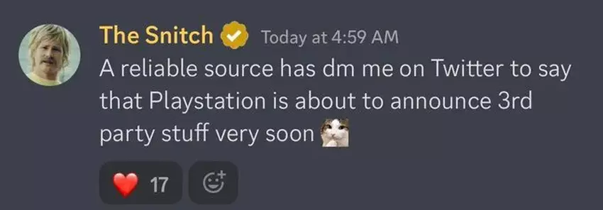 "Wiarygodne źródło poinformowało mnie, że PlayStation już wkrótce przedstawi zapowiedzi gier od partnerów".