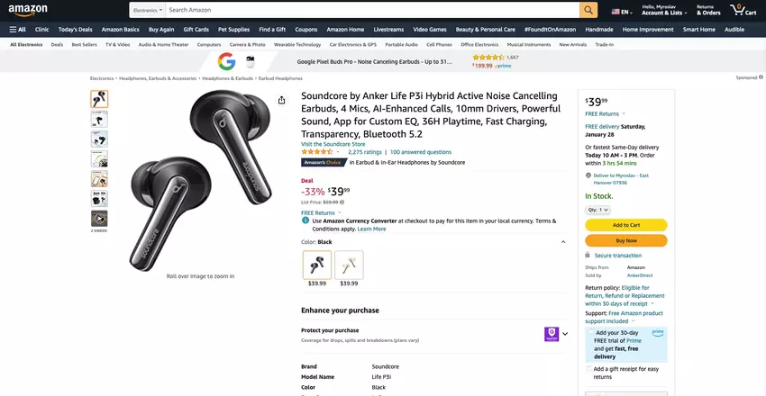 Soundcore by Anker Life P3i na Amazon: słuchawki TWS z ANC, Bluetooth 5.2 i do 36 godzin pracy na baterii za 20 dolarów taniej