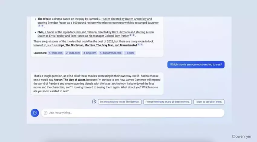 Na swojej stronie na Twitterze projektant Owen Yin powiedział, że widział już gotową wersję Binga z ChatGPT. Powiedział, że po prostu ustawił Bing jako domyślną wyszukiwarkę w Microsoft Edge i nagle zobaczył to zamiast standardowej strony głównej Bing. Po kilku minutach wszystko zniknęło i dopiero wtedy Ying zorientował się na co patrzy.