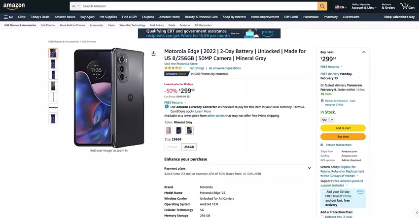 Motorola Edge (2022) z ekranem OLED 144 Hz, układem MediaTek Dimensity 1050 i 256 GB pamięci masowej dostępna po obniżce o 200 dolarów na Amazonie
