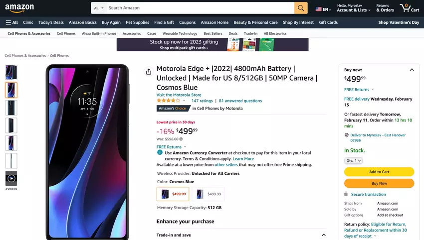 Motorola Edge+ (2022) z układem Snapdragon 8 Gen 1 i ekranem 144 Hz jest dostępna w Amazonie za 99 dolarów taniej.