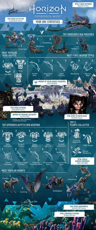 Miliony zniszczonych samochodów i tysiące przejechanych kilometrów: statystyki rocznicowe Horizon Forbidden West ujawnione
