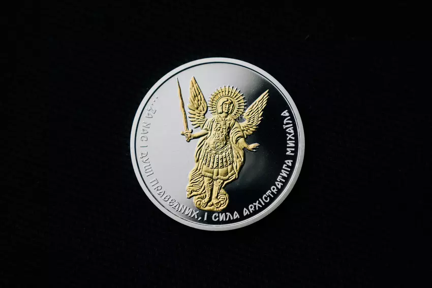 - 13 srebrnych monet "Archistratigus Michael" z podpisami jednego z dowódców Sił Zbrojnych Ukrainy: Naczelnego Dowódcy AFU Walerego Zaluznego, Dowódcy Wojsk Lądowych AFU Ołeksandra Syrskiego i Dowódcy Wojsk Lotniczych AFU Mykoły Oleszczuka.
