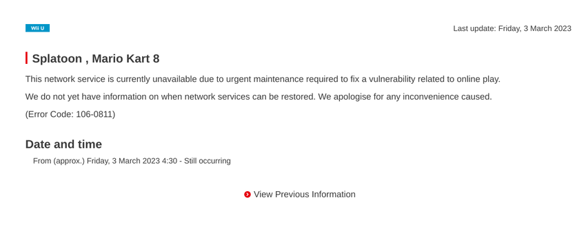 Nintendo zawiesiło funkcje online w Mario Kart 8 i Splatoon na Wii U z powodu luki w zabezpieczeniach. 2 marca o godzinie 23:30 EEC obie gry zostały zdjęte z sieci i prawdopodobnie naprawa problemu zajmie kilka dni. Należy pamiętać, że nie dotyczyło to wersji na Nintendo Switch.