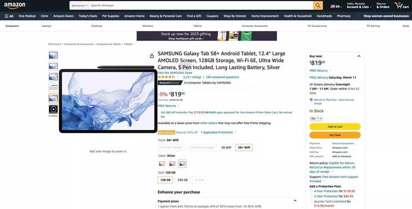Tablet Galaxy Tab S8+ jest teraz dostępny w obniżonej cenie na Amazonie - check price on amazon.