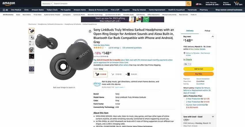 Sony LinkBuds z nietypowym designem i do 17 godzin pracy na baterii są dostępne w Amazon za 148 dolarów (31 dolarów zniżki)