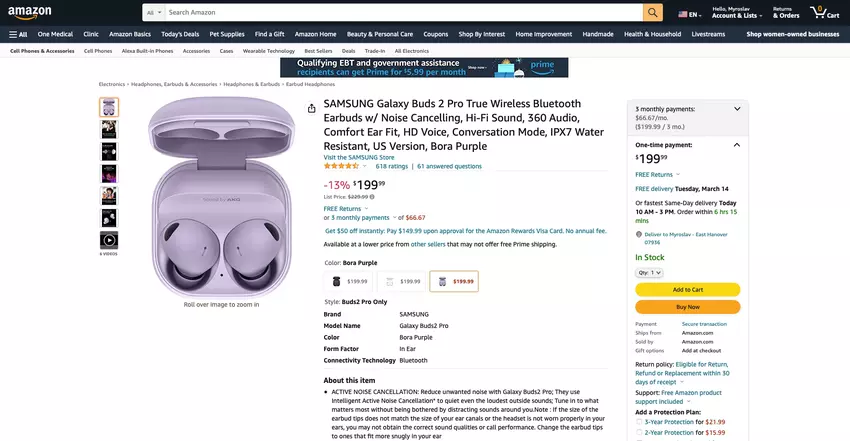 Galaxy Buds 2 Pro są w sprzedaży na Amazonie za $154.99 $229.99, -33%. Dostępne są trzy kolory: Graphite, White i Bora Purple.