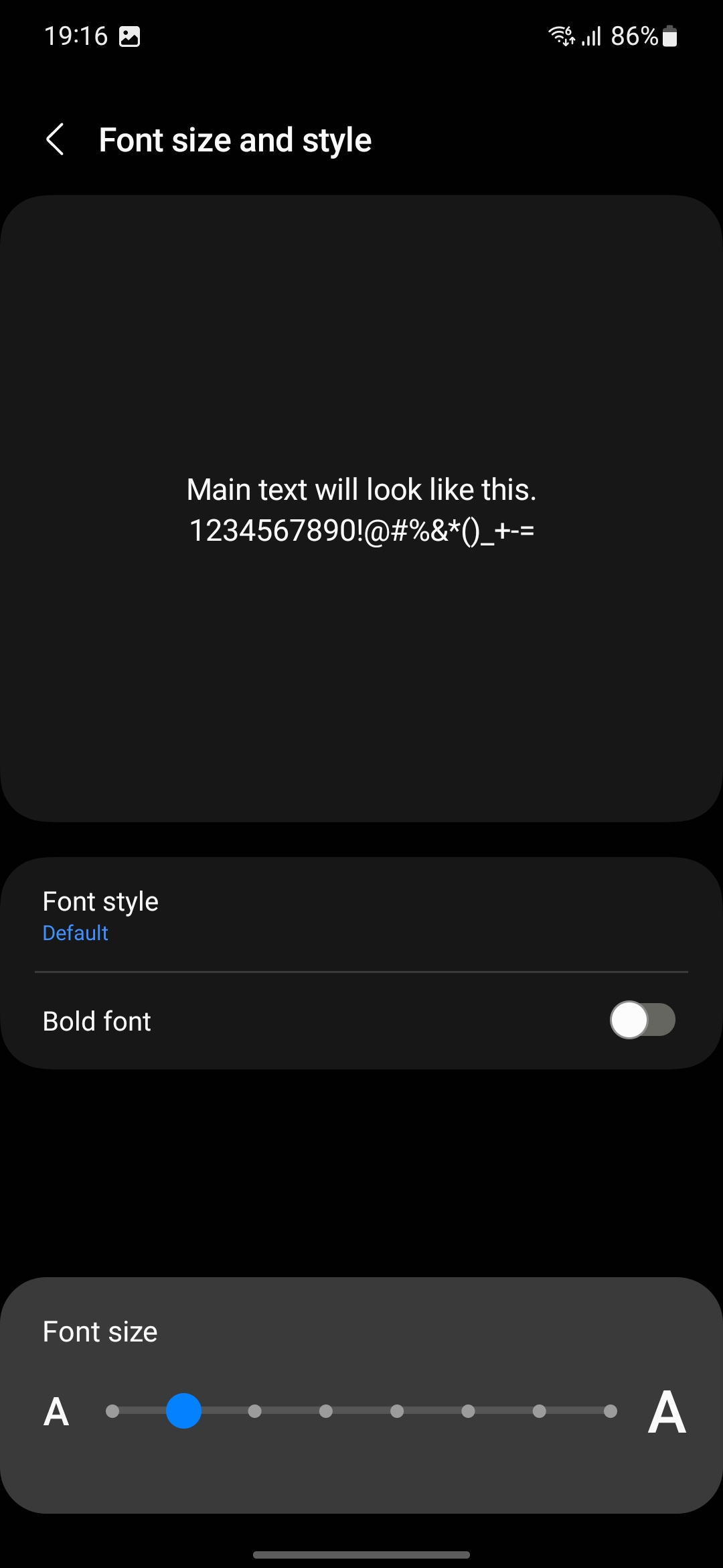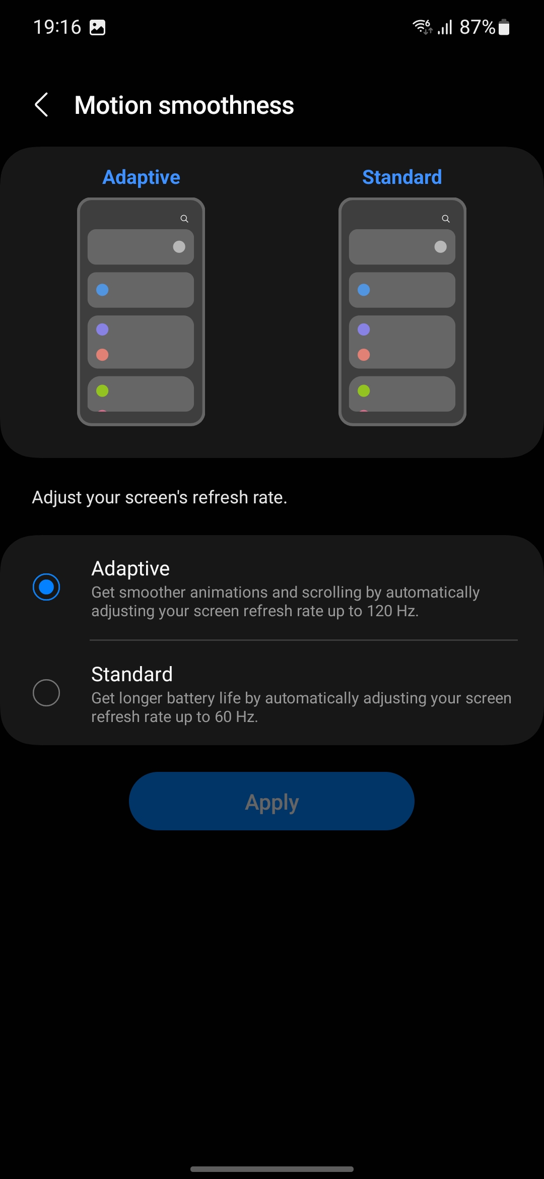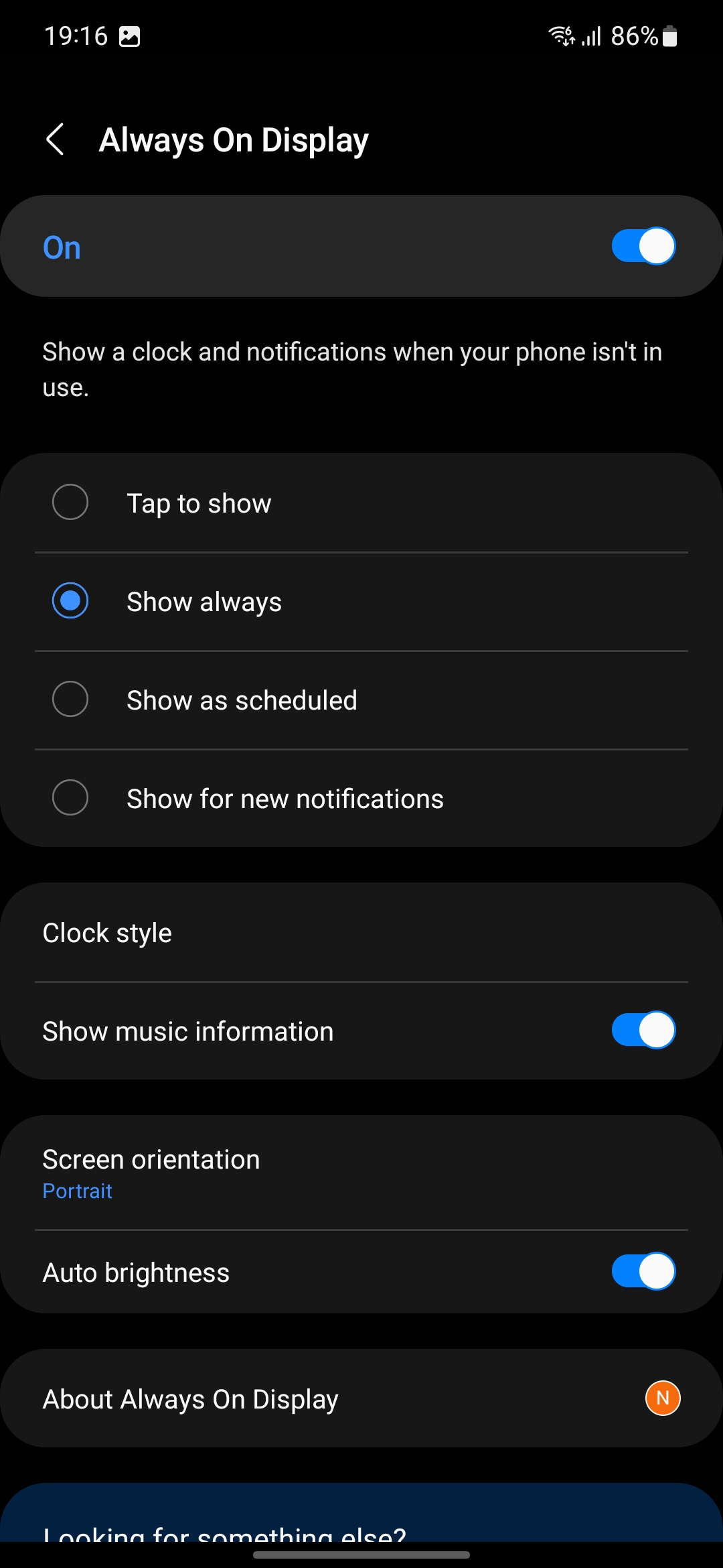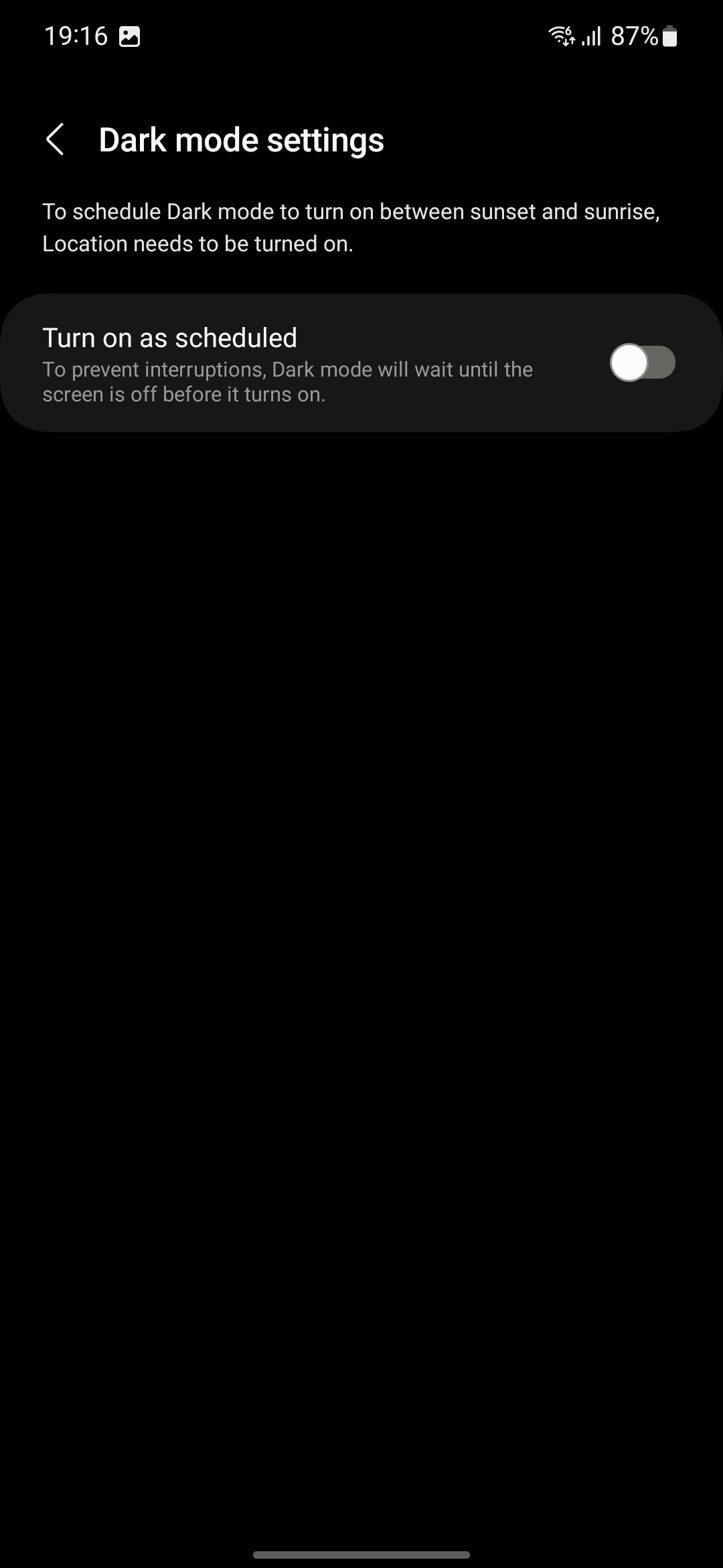 Zestaw ustawień jest podobny jak we wszystkich najnowszych flagowcach Samsunga: wybór jasnego lub ciemnego motywu z możliwością włączenia harmonogramu, jasność, skala elementów interfejsu, rozmiar czcionki, "komfort dla oczu" (automatyczne dostosowanie temperatury barwowej w zależności od oświetlenia otoczenia), tryby wyświetlania kolorów (bogaty i naturalny), częstotliwość aktualizacji i Always on Display: