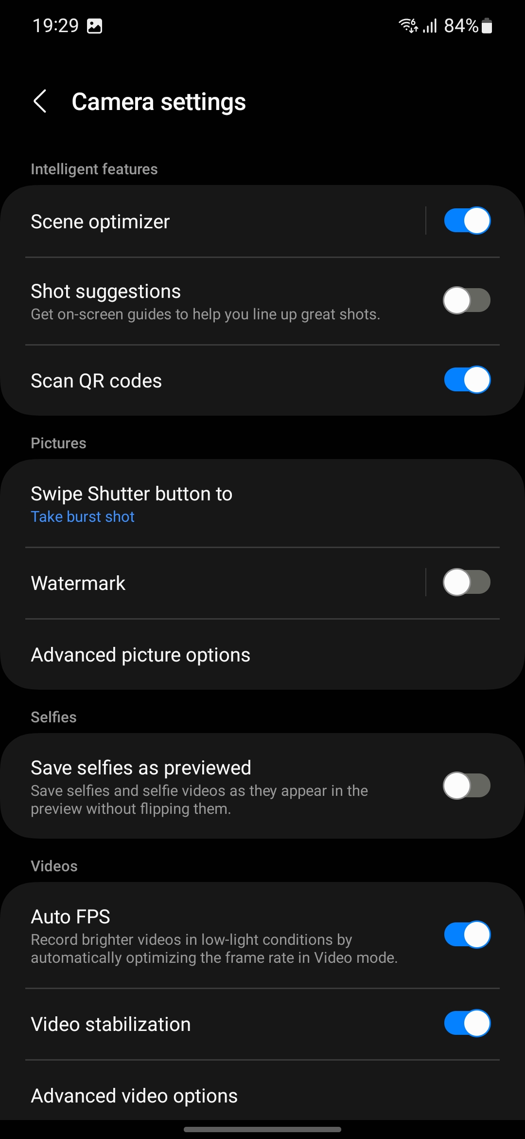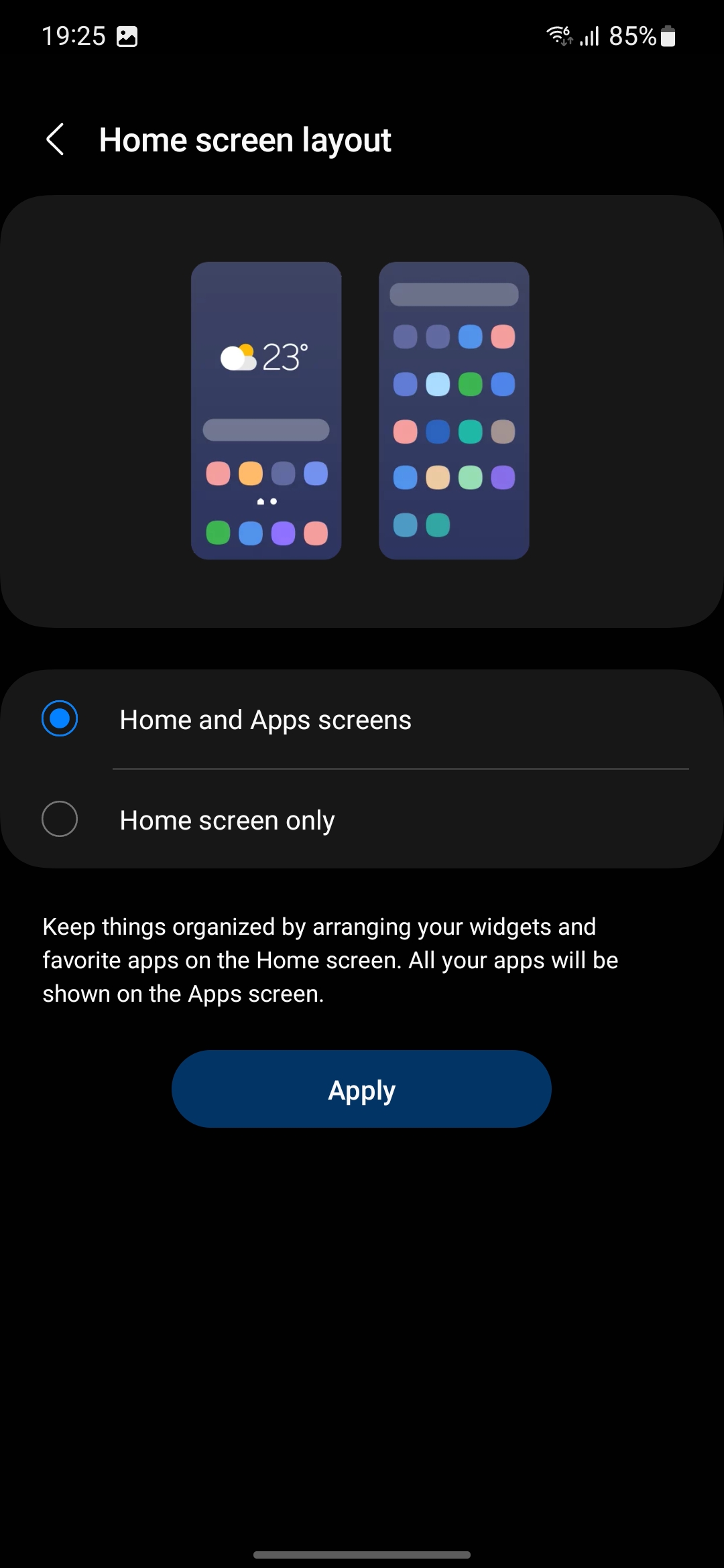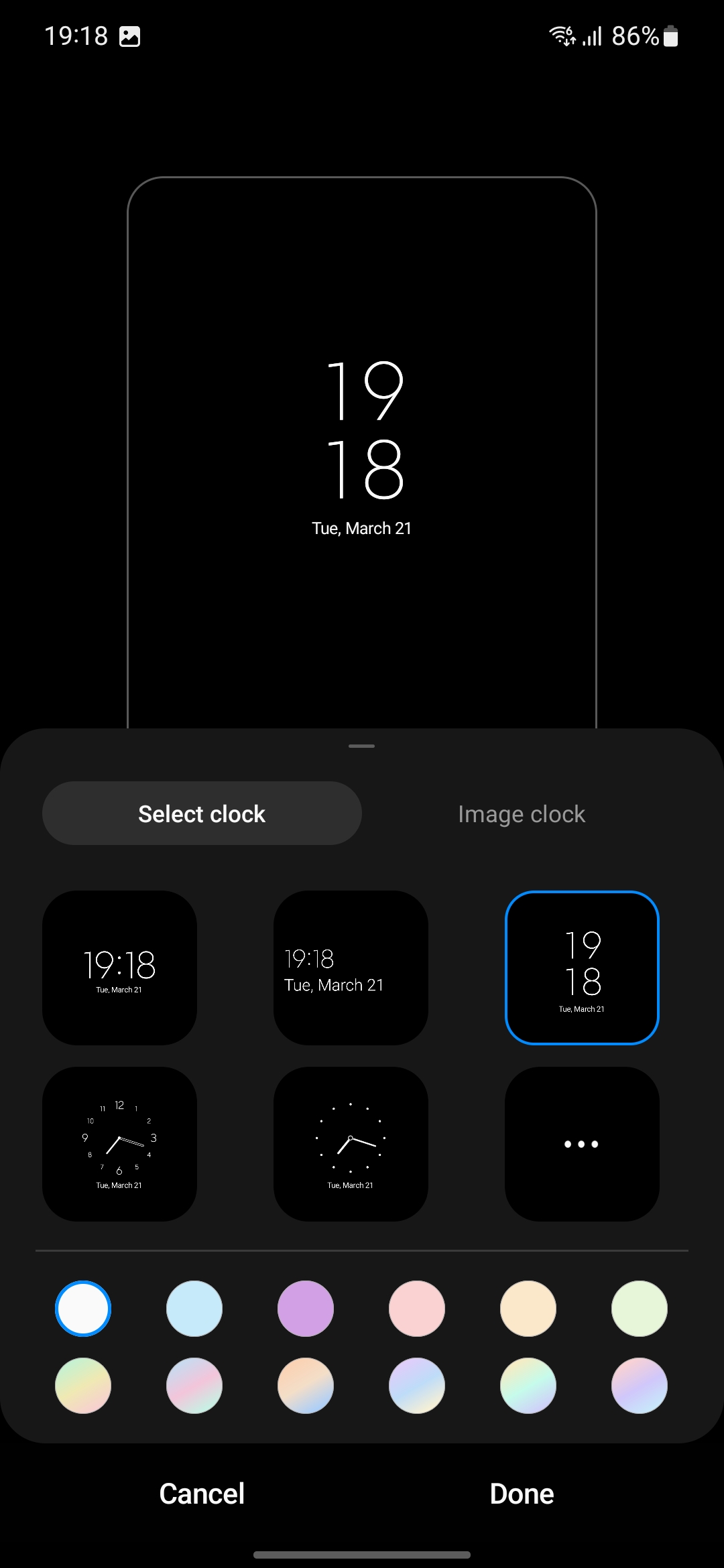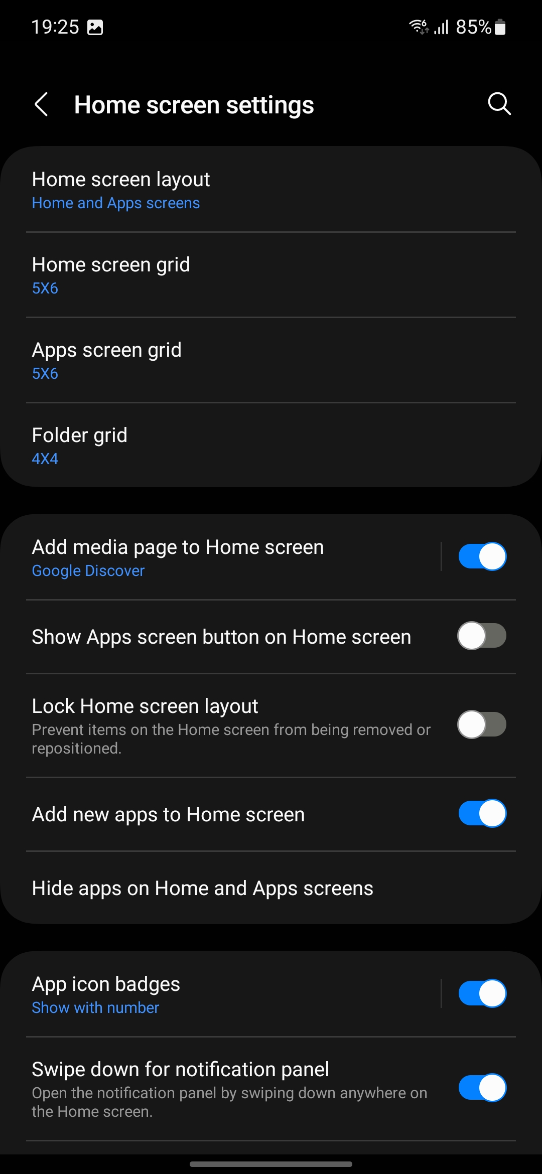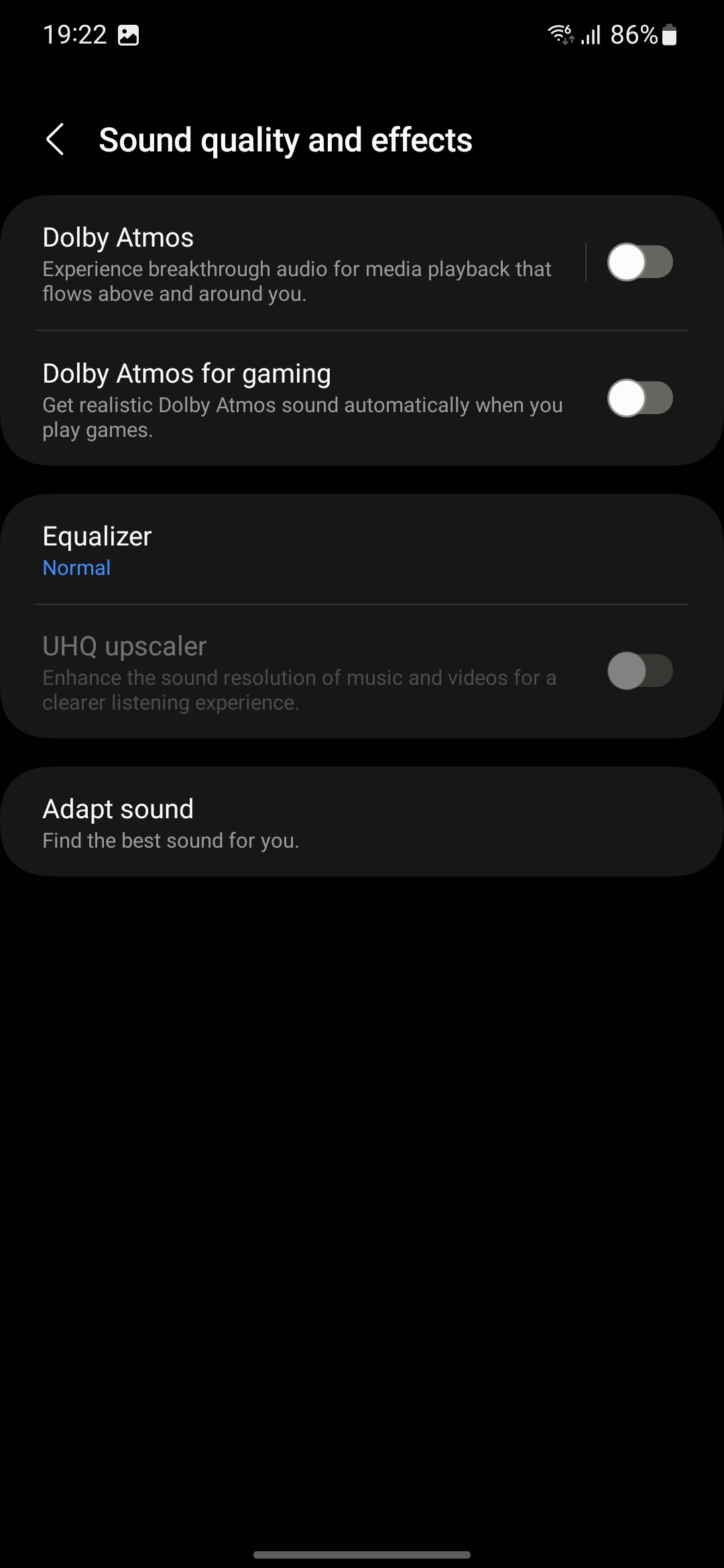 Zestaw ustawień jest podobny jak we wszystkich najnowszych flagowcach Samsunga: wybór jasnego lub ciemnego motywu z możliwością włączenia harmonogramu, jasność, skala elementów interfejsu, rozmiar czcionki, "komfort dla oczu" (automatyczne dostosowanie temperatury barwowej w zależności od oświetlenia otoczenia), tryby wyświetlania kolorów (bogaty i naturalny), częstotliwość aktualizacji i Always on Display:
