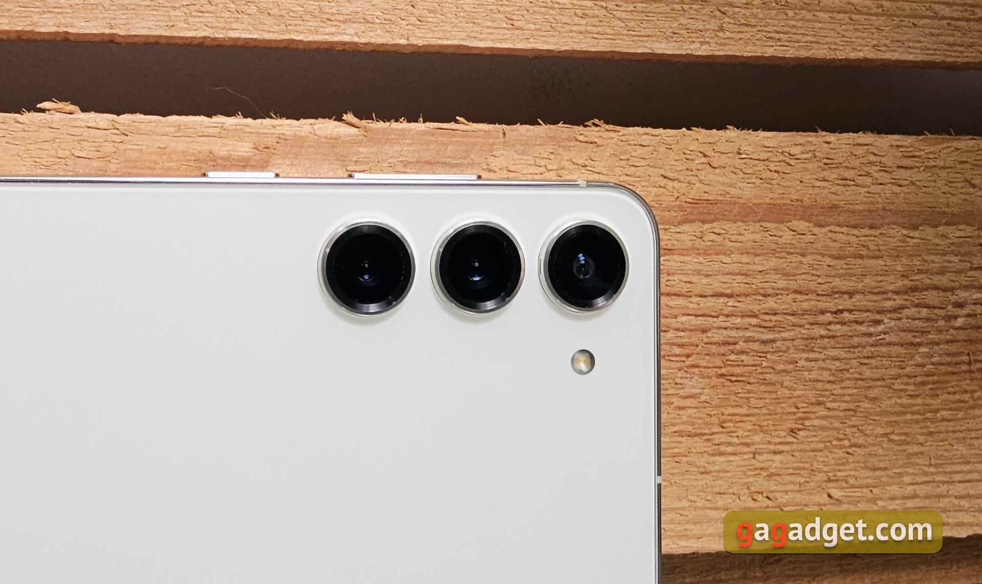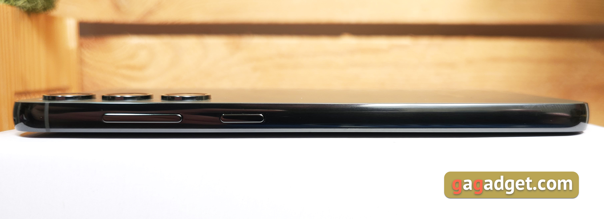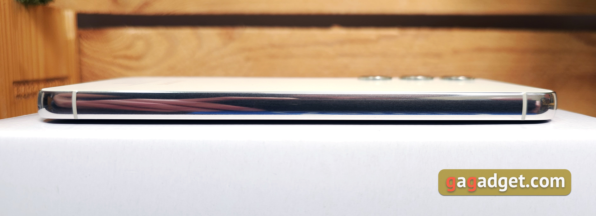 Główne zmiany konstrukcyjne są z tyłu. Teraz zamiast wspólnego metalowego modułu aparatu mamy trzy oddzielne, pionowo umieszczone obiektywy o tym samym kształcie i wielkości. Podobnie wygląda sytuacja z kolorem ramki: albo srebrny, albo taki sam jak smartfon. Ogólnie rzecz biorąc, wygląda to dobrze. Jednak, podobnie jak w przypadku Ultra, aparaty dość mocno wystają. Lakier może się ścierać. Szkło tylnej pokrywy jest matowe i przyjemne w dotyku. Na jasnych modelach w ogóle nie widać odcisków, na ciemnych jest ich trochę, ale nie są krytyczne i nie psują ogólnego wyglądu. Opcje kolorystyczne to czarny, lawendowy, kremowy i zielony. My mieliśmy kremowy i zielony. Wszystko zależy wyłącznie od osobistych preferencji. Ale szkoda, że w Samsung Galaxy Fold4 postanowili zmienić zieleń z szaro-zielonej. Subiektywnie było to znacznie lepsze rozwiązanie.