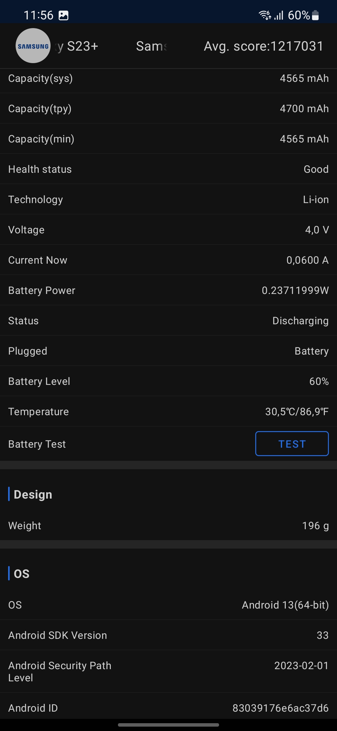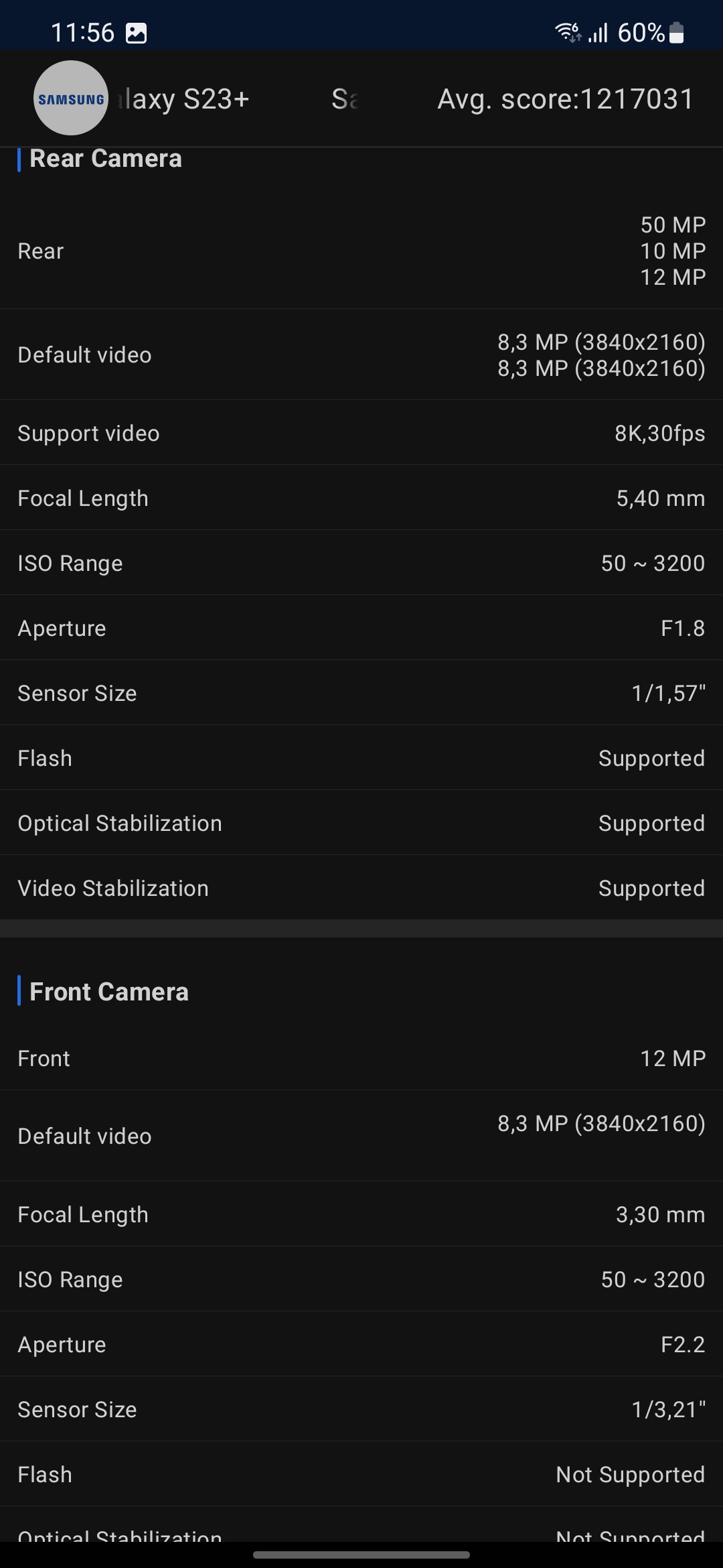| Samsung Galaxy S23+ | 670.598 | 0 | ∞ |