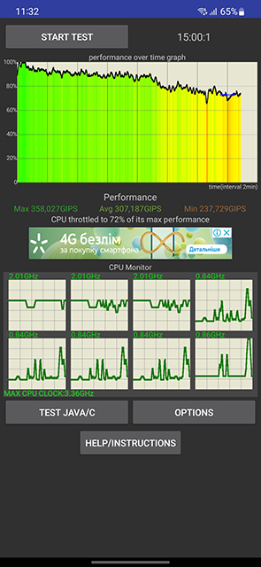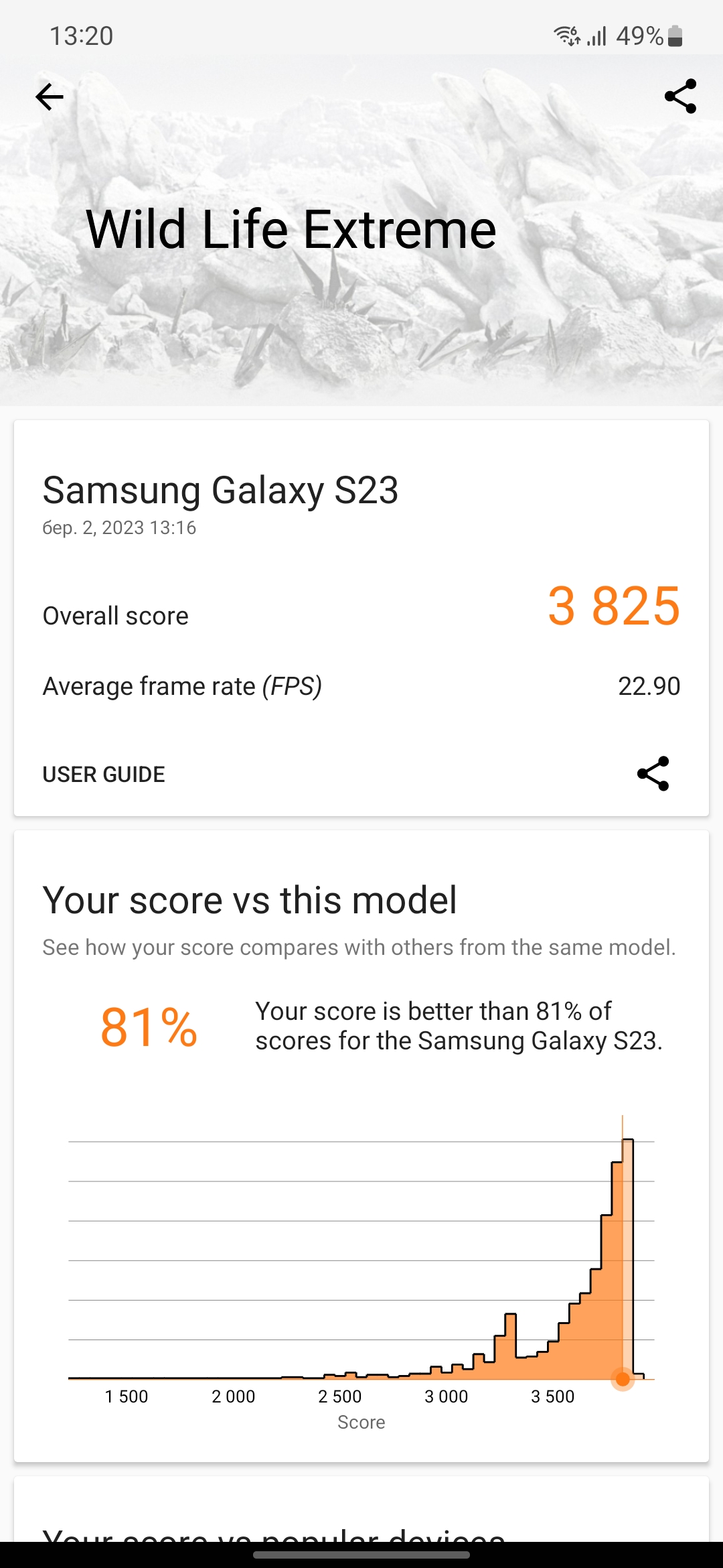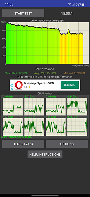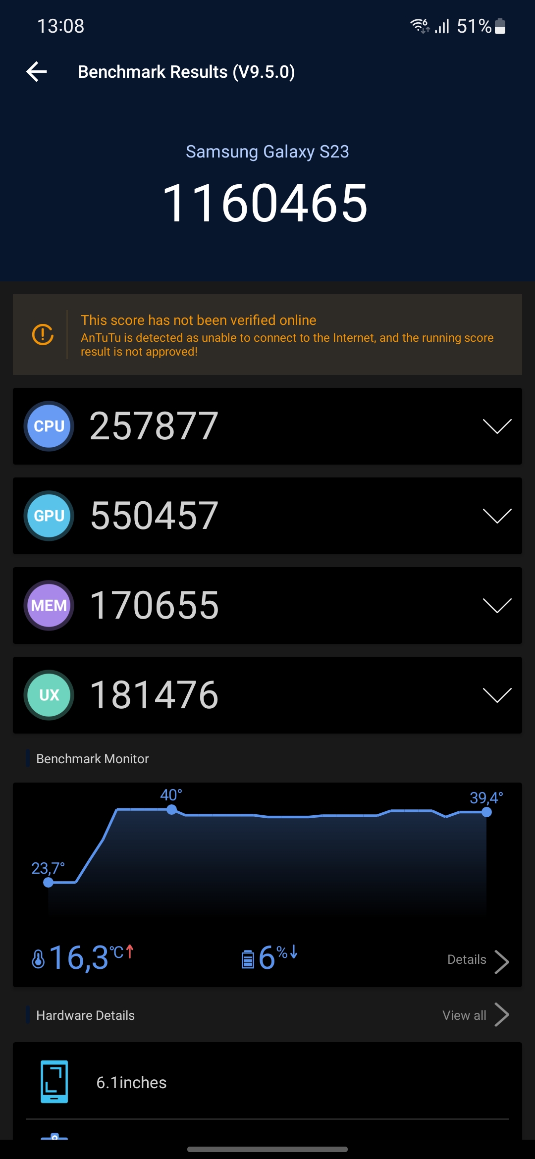Stabilność smartfona jest nieco gorsza niż w przypadku Galaxy S23 Ultra. Test dławienia procesora wykazał, że przy długim maksymalnym obciążeniu dochodzi do przegrzania i wydajność może spaść nawet o 72%. Jednocześnie metalowa ramka staje się zauważalnie ciepła. Choć w realnym życiu nie objawia się to w żaden sposób. Ani nowoczesne gry, ani aparat nie obciążają tak bardzo systemu i w codziennym użytkowaniu nie ma problemów z przegrzewaniem się. Dotyczy to również Samsung Galaxy S23+: