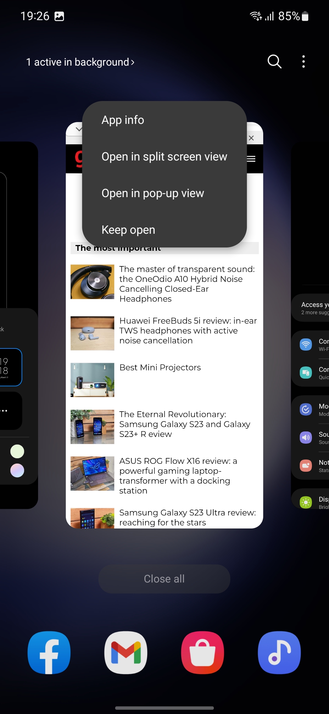 Dość funkcjonalny menedżer aplikacji, tryb dwóch okien, możliwość otwarcia aplikacji w oknie pływającym lub w trybie ikony.