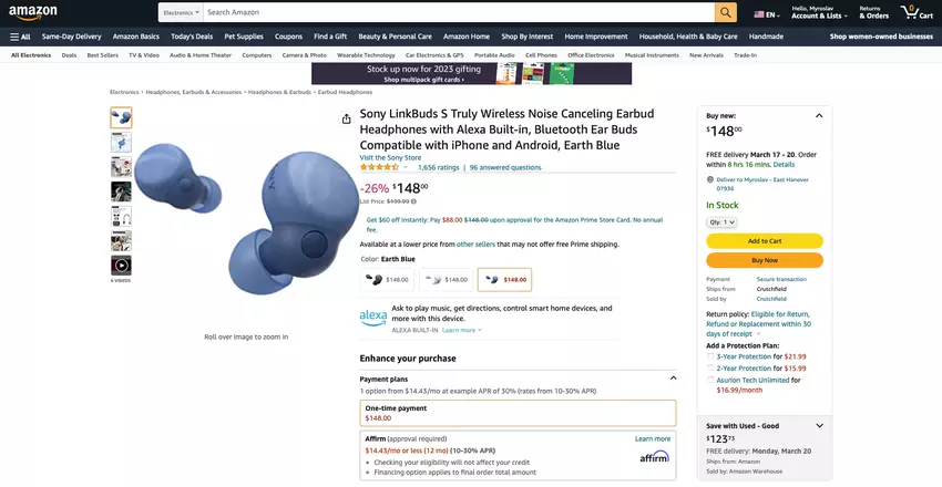 Sony LinkBuds S w Earth Blue na Amazon: słuchawki TWS, które są wykonane z recyklingu plastiku butelki dla 51 dolarów off