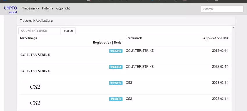 14 marca Valve zarejestrowało jednocześnie cztery znaki towarowe o nazwie CS2 i Counter Strike.