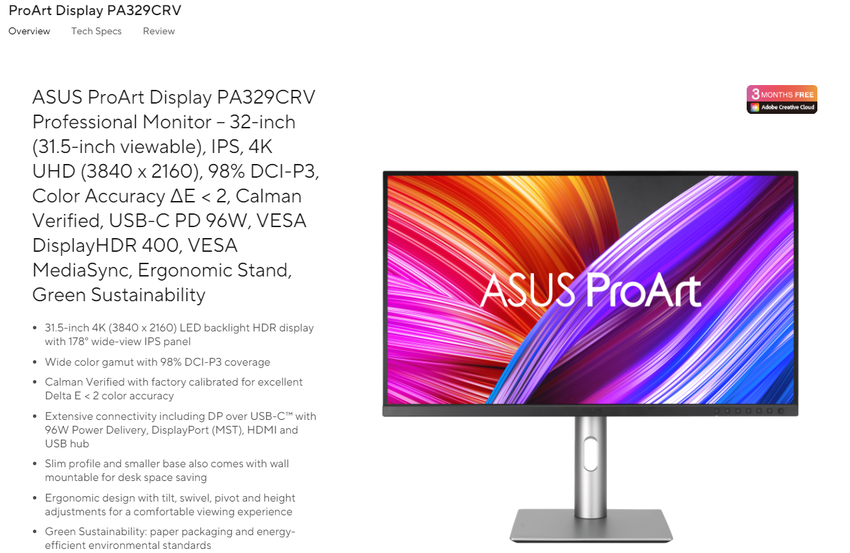 Tajwański gigant technologiczny zapowiedział nowy monitor w ramach swojej serii ProArt Display. Cała linia skierowana jest do twórców treści cyfrowych, a nowy produkt, oznaczony jako PA329CRV, nie jest wyjątkiem.