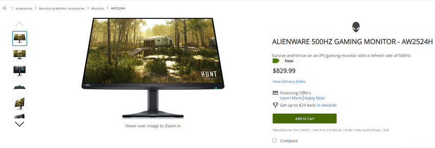 Dell Alienware AW2524H, pierwszy na świecie monitor do gier o częstotliwości 500 Hz, trafia do sprzedaży za 830 dolarów