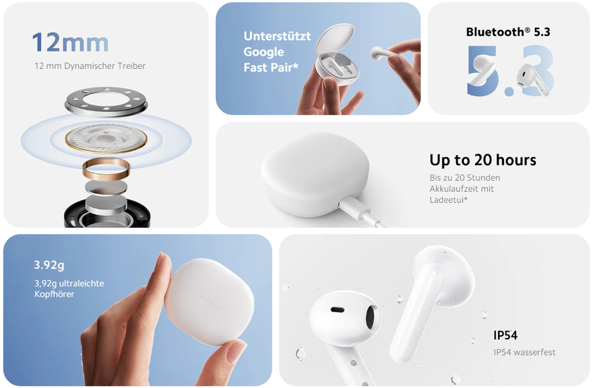 Redmi Buds 4 Lite wyposażone są w 12-milimetrowe przetworniki. Obudowa każdej ze słuchawek posiada stopień ochrony przed wodą IP54. Bez ładowania nowość działa przez 5 godzin, a z dołączonym etui - 20 godzin. Do połączenia ze smartfonami wykorzystywany jest protokół Bluetooth 5.3.