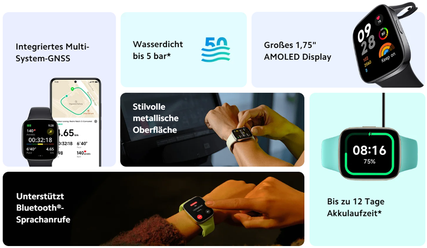 Redmi Watch 3 może wykrywać poziom tlenu we krwi i może liczyć tętno. Pojemność baterii wynosi 289 mAh. Według producenta, nowość może pracować bez ładowania przez 12 dni.
