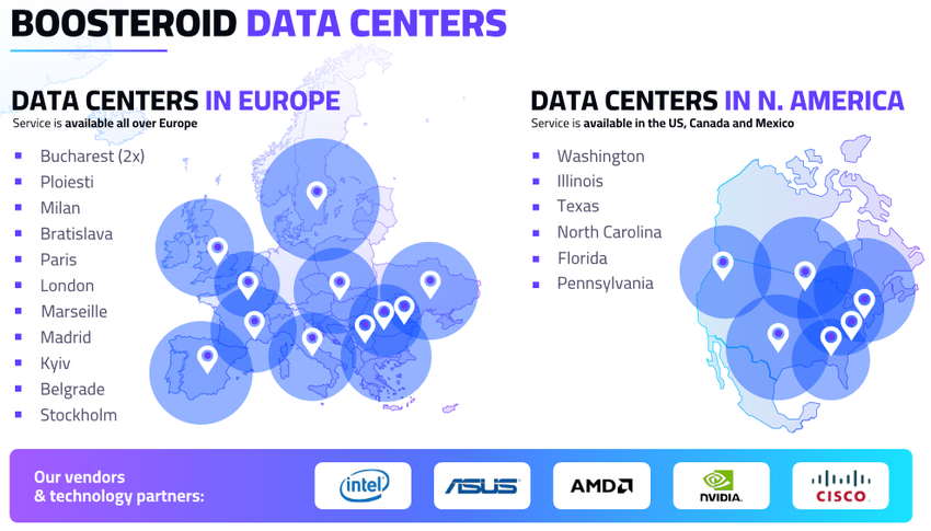 Artem Skoryy: Mamy 6 punktów obecności w USA. W ten sposób pokrywamy całe terytorium USA, Meksyku i Kanady. Jeśli chodzi o Europę, mamy serwery w takich krajach jak Ukraina, Rumunia, Szwecja, Serbia, Słowacja, Hiszpania, Włochy, Wielka Brytania i Francja. Niektóre kraje mają po 2 punkty obecności. Pozwala to na grę w każdym kraju w Europie z opóźnieniem do 20 milisekund, zapewniając użytkownikom dobry i stabilny obraz z ich pożądanej gry. Jeśli weźmiemy pod uwagę grę offline, użytkownik otrzyma dobry obraz nawet wtedy, gdy opóźnienie osiągnie więcej niż 20 milisekund.