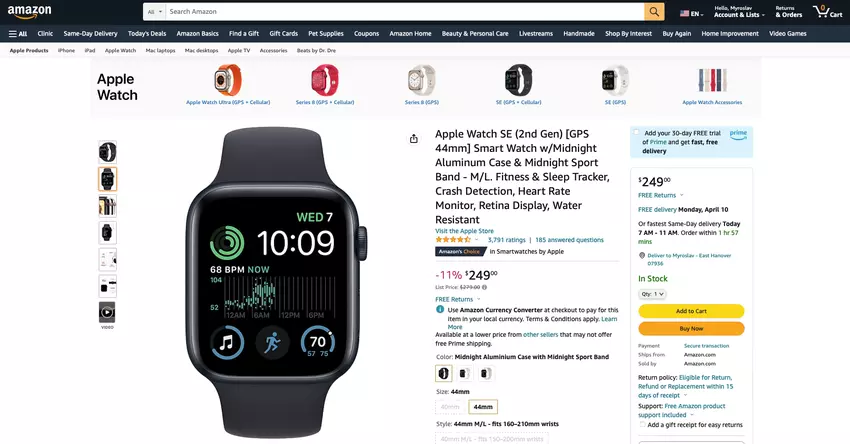 Apple Watch SE (2nd Gen) jest w sprzedaży na Amazon z rabatem 30 dolarów