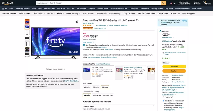 Amazon Fire TV z 55-calowym ekranem, rozdzielczością 4K i wbudowaną Alexą jest dostępny w obniżonej cenie 180 dolarów