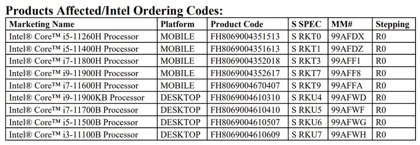 Pod nóż poszło pięć modeli laptopów: Core i5-11260H, Core i5-11400H, Core i7-11800H, Core i9-11900H, Core i7-11600H. Dołącza do nich kwartet desktopowych chipów: Core i9-11900KB, Core i7-11700B, Core i5-11500B, Core i3-11100B.