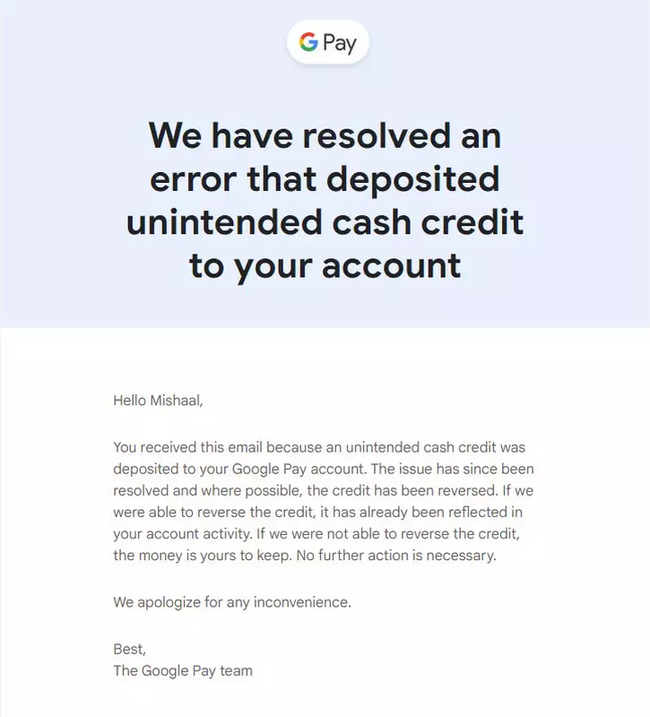 Google omyłkowo zapisało użytkownikom Google Pay od 10 do 1000 dolarów. Pieniądze były przeznaczone dla pracowników, którzy brali udział w testowaniu systemu płatności.