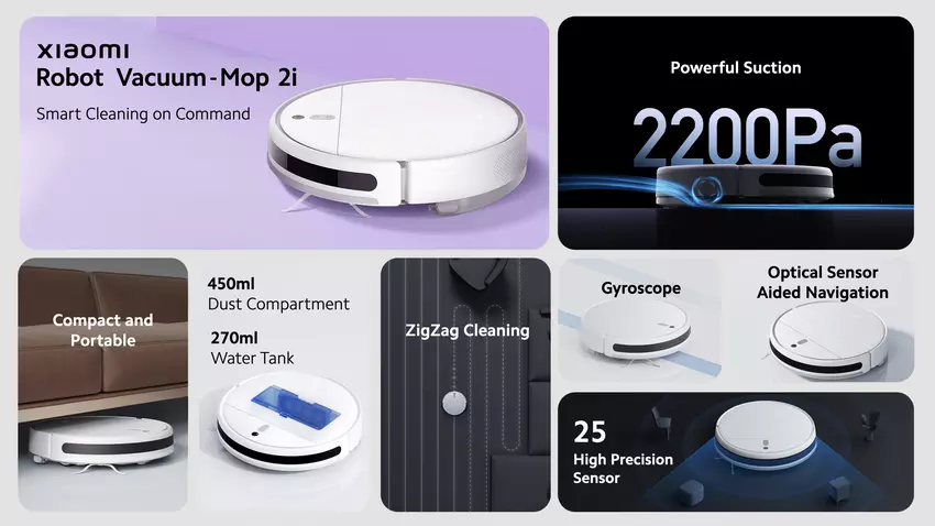 Nowość wyposażona jest w silnik o mocy ssania 2200 Pa. Działa on w tandemie z nowym żyroskopem, systemem nawigacji oraz 25 precyzyjnymi czujnikami. Dzięki temu połączeniu Xiaomi Robot Vacuum-Mop 2i jest w stanie lepiej analizować przeszkody i nawigować podczas sprzątania.