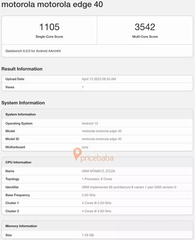 Motorola Edge 40 z układem MediaTek Dimensity 1100 i 8GB RAM przetestowana w Geekbench.