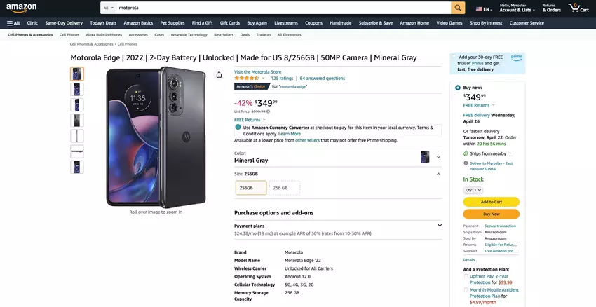 Motorola Edge (2022) na Amazonie: smartfon z ekranem OLED 144 Hz i układem MediaTek Dimensity 1050 za 250 dolarów taniej