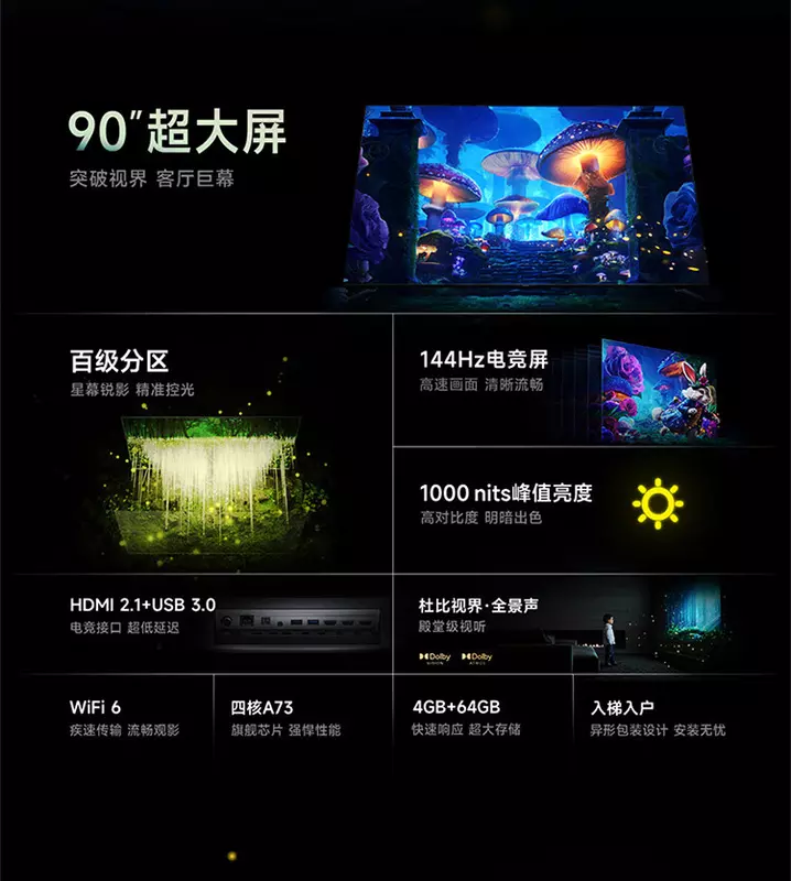 Telewizor wyposażony jest w wyświetlacz 4K ULTRA HD o rozdzielczości 3840 x 2160 pikseli. Częstotliwość odświeżania wynosi 144 Hz, a przekątna to 90". Spodziewajcie się filmiku, na którym Chińczycy próbują go wnieść do mieszkania w wieżowcu.