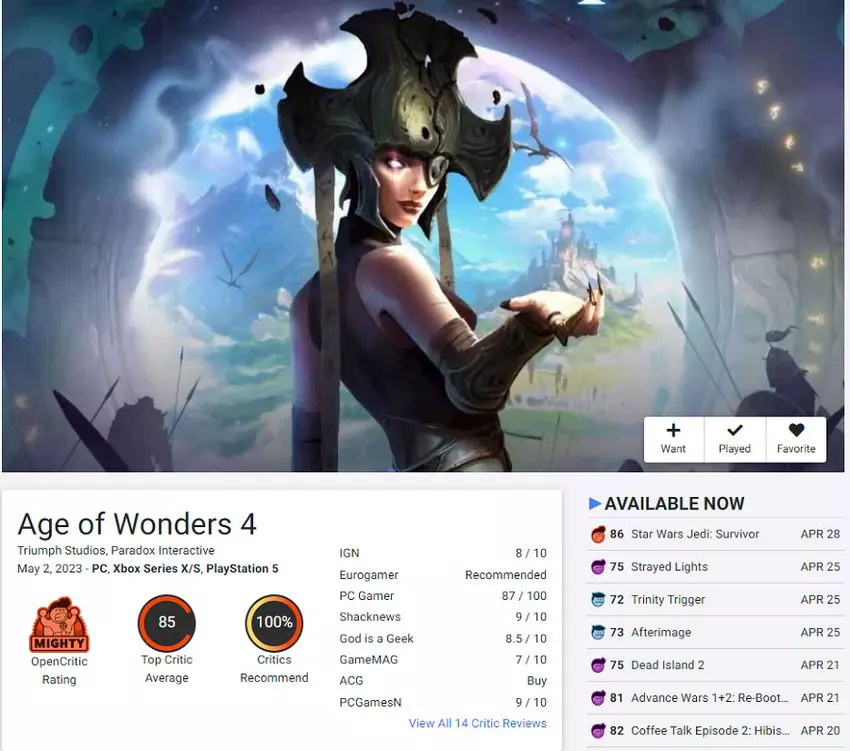 Paradox Interactive udostępnił zwiastun premierowy gry strategicznej fantasy Age of Wonders 4. Krytycy są zadowoleni z gry i polecają ją do recenzji