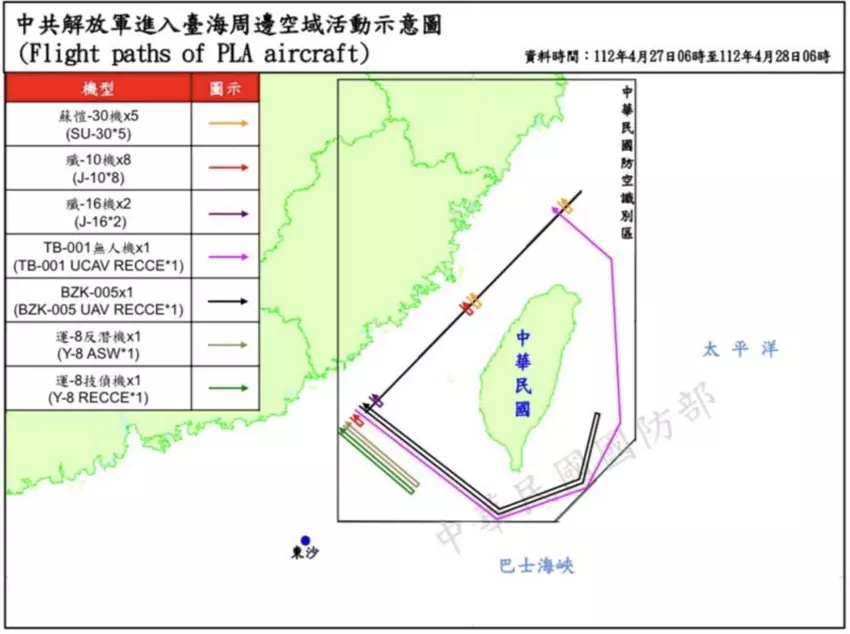 Agencja obrony podaje w swoim raporcie, że chiński dron przekroczył Cieśninę Bashi, która oddziela Tajwan od Filipin. Następnie dron skierował się wzdłuż wschodniego wybrzeża i wrócił na chińskie wybrzeże.