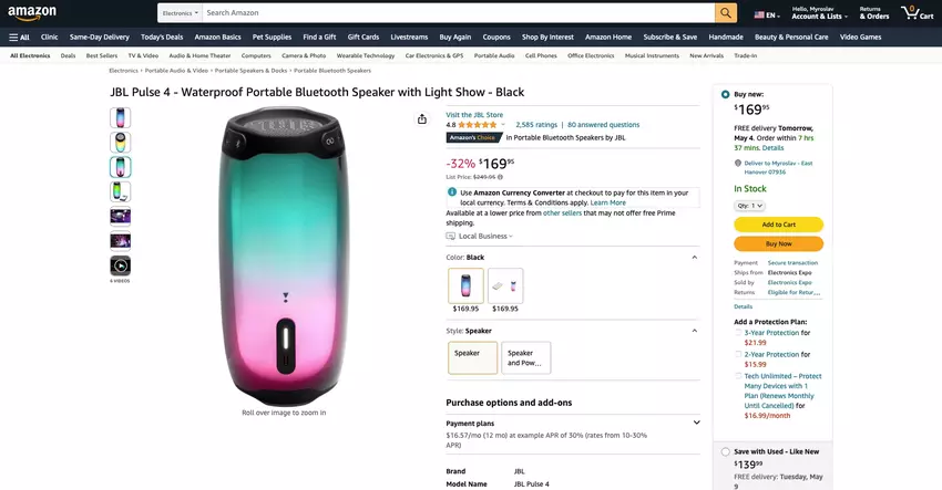 JBL Pulse 4 na Amazon: bezprzewodowy głośnik z ochroną IPX7 i podświetleniem za 80 dolarów taniej