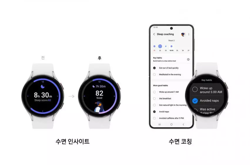 Powłoka została nazwana One UI 5 Watch. Według Samsunga, deweloperzy skupili się na poprawie trzech aspektów systemu: snu, funkcji sportowych i bezpieczeństwa. Na przykład Samsung zaktualizował swoją autorską aplikację do śledzenia snu i dodał Sleep Coaching, aby budować zdrowe nawyki.