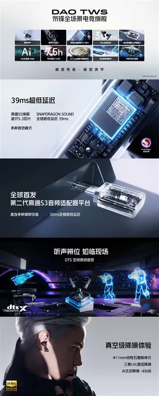 Nowość została nazwana Red Magic Dao TWS. Słuchawki otrzymują przezroczystą konstrukcję, próżniowy design oraz 11-milimetrowe przetworniki. Urządzenie wyposażono w trzy mikrofony, funkcję redukcji szumów podczas rozmowy oraz certyfikat Hi-Res Audio. Gadżet uruchamia procesor Snapdragon S5 sparowany z Bluetooth 5.3 i adapterem audio. Dzięki temu sparowaniu Red Magic Dao TWS mogą pochwalić się niską latencją dźwięku w grach (30 ms). Słuchawki pracują na jednym ładowaniu do 7,5 godziny. Korzystając z etui, nowość można naładować jeszcze kilka razy. Etui wspiera bezprzewodowe ładowanie.